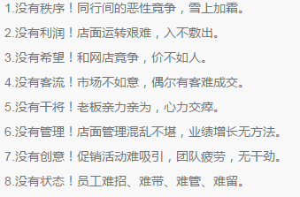 导读 身为千万经销商中一员的你, 是否会时常感叹生意难做, 业绩不理想,客流稀少,团队无活力。 面对这些不理想的现状,你有没有仔细想过, 店面的运转到底出在了哪里?